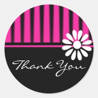 Zazzle sticker from sema: Flower & Stripes Pink Thank You StickersThank you stickers are a great way to show your appreciation.White flower and pink and black stripes add a designer touch to your thank you envelope seals and labels..Visit semas87's store Join semas87's fan club |